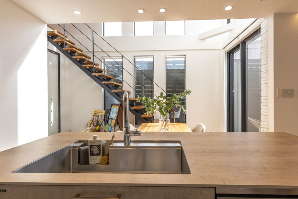 Machi(家)Ka series「ほど・よい」で建てられた浜寺元町街角モデルハウスは、身体に優しい漆喰(しっくい)を使用。