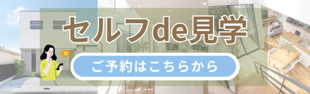 セルフde見学はご予約いただければ、スタッフや営業が不在でモデルハウスをじっくりとご見学いただけるシステムです。予約から施錠まで全てスマホのみで完結できますので、ぜひお気軽にご予約くださいませ。